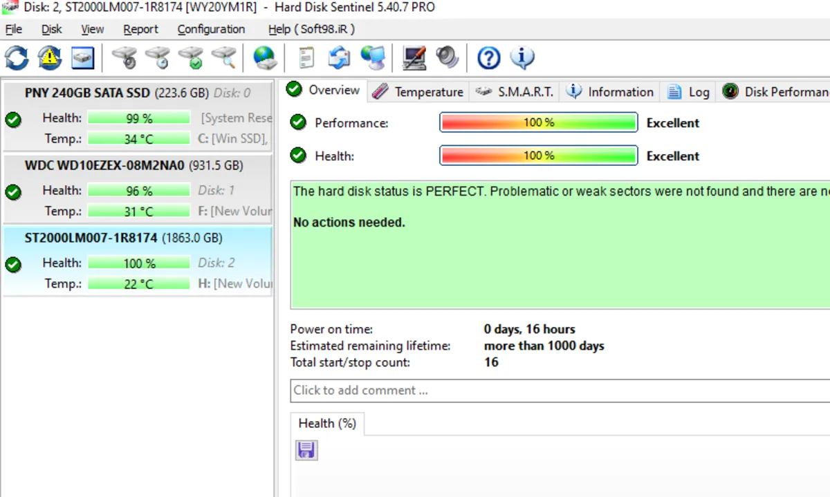 این هارد بخاطر انتقال اطلاعات باز شده وفقط 16ساعت کارکرد دارد، در سلامت 100 در صد می باشد(عکس دوم) و گارانتی تا 29/7/1405 دارد. و در حد نومی باشد.